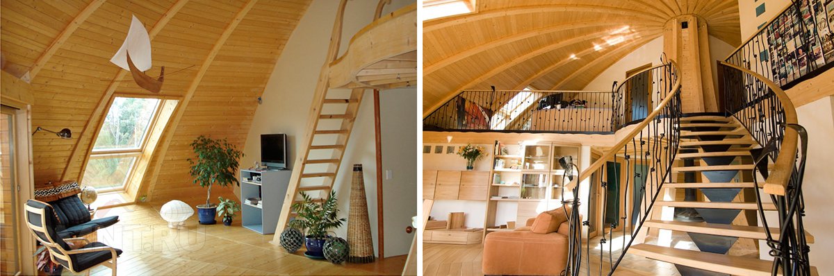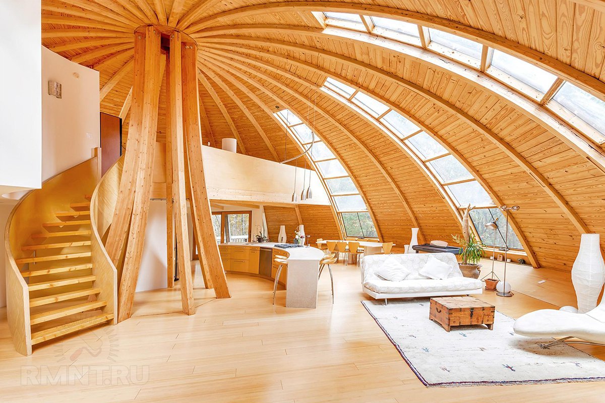 Есть еще необычная планировка, но однозначно ее отнести к недостаткам не получится. Нравятся купольные дома именно своей неординарностью. Так что нестандартная форма помещений — это, скорее, особенность, которую надо учитывать при подборе/заказе мебели и выборе отделочных материалов.