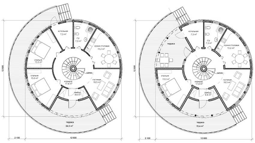 И действительно, как можно разделить дом такой непростой формы на помещения, необходимые для комфортного проживания? Зачастую некоторые застройщики, очарованные внешним видом, не вполне отдают себе отчет, что планировочные решения для круглого дома могут представлять большую проблему. Ведь сделать удобную и гармоничную планировку внутри круга довольно сложно.