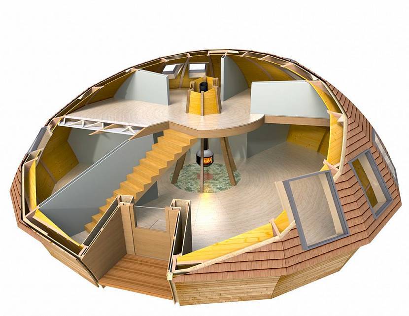 Наконец, минимальная площадь поверхности ограждающих конструкций -это реальная экономия на отоплении, купольная постройка – ещё один шаг к созданию энергоэффективного дома.