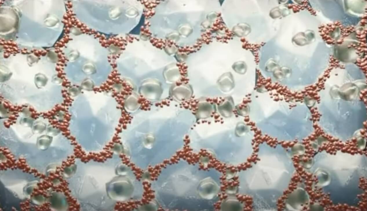 При изготовлении агломерата дозированный разноразмерный кварц позволяет получить высокую насыпную плотность смеси благодаря заполнению пустот между крупными частицами более мелкими. Полиэфирная смола обволакивает зерна и при термической обработке затвердевает вместе с ними, образуя беспористую твердую плиту. Отсутствие пор определяет влагостойкость кварцевой столешницы.