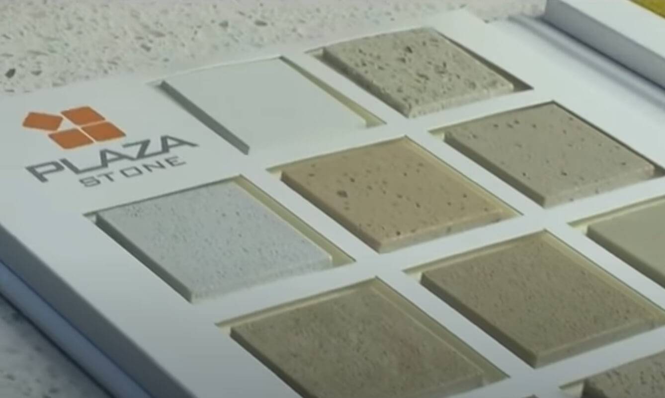 За счет кварца разных фракций смесь приобретает высокую насыпную плотность — все пустоты между крупными частями последовательно заполняются более мелкими частицами. При этом расходуется минимальное количество связующего вещества — полиэфирной смолы, которая обволакивает зерна кварца. При каталитической реакции полиэфирная смола затвердевает, и вещество превращается в твердую плиту.