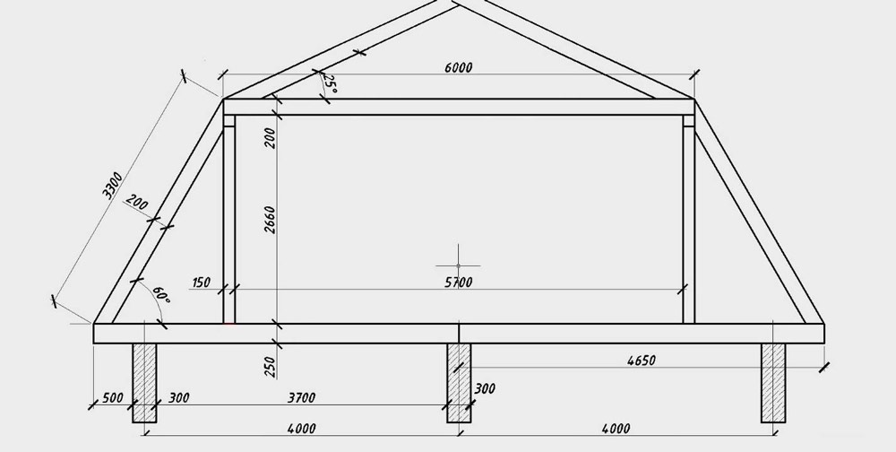 Стропильная система мансардной двухскатной крыши выполняется с соблюдением следующих правил: