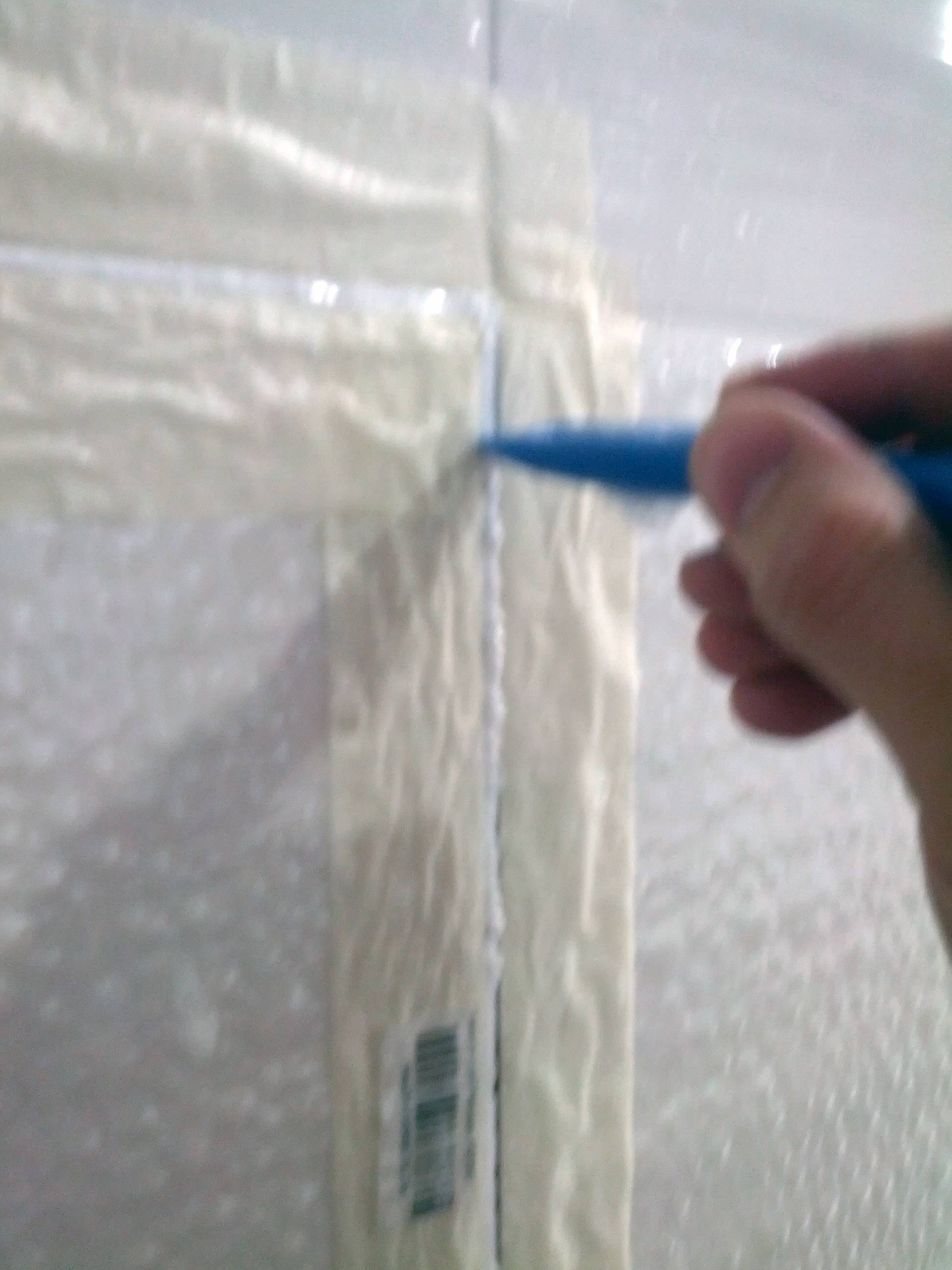 - нанесите клей на скотч по всем сторонам проема, включая поверхность пластинок;