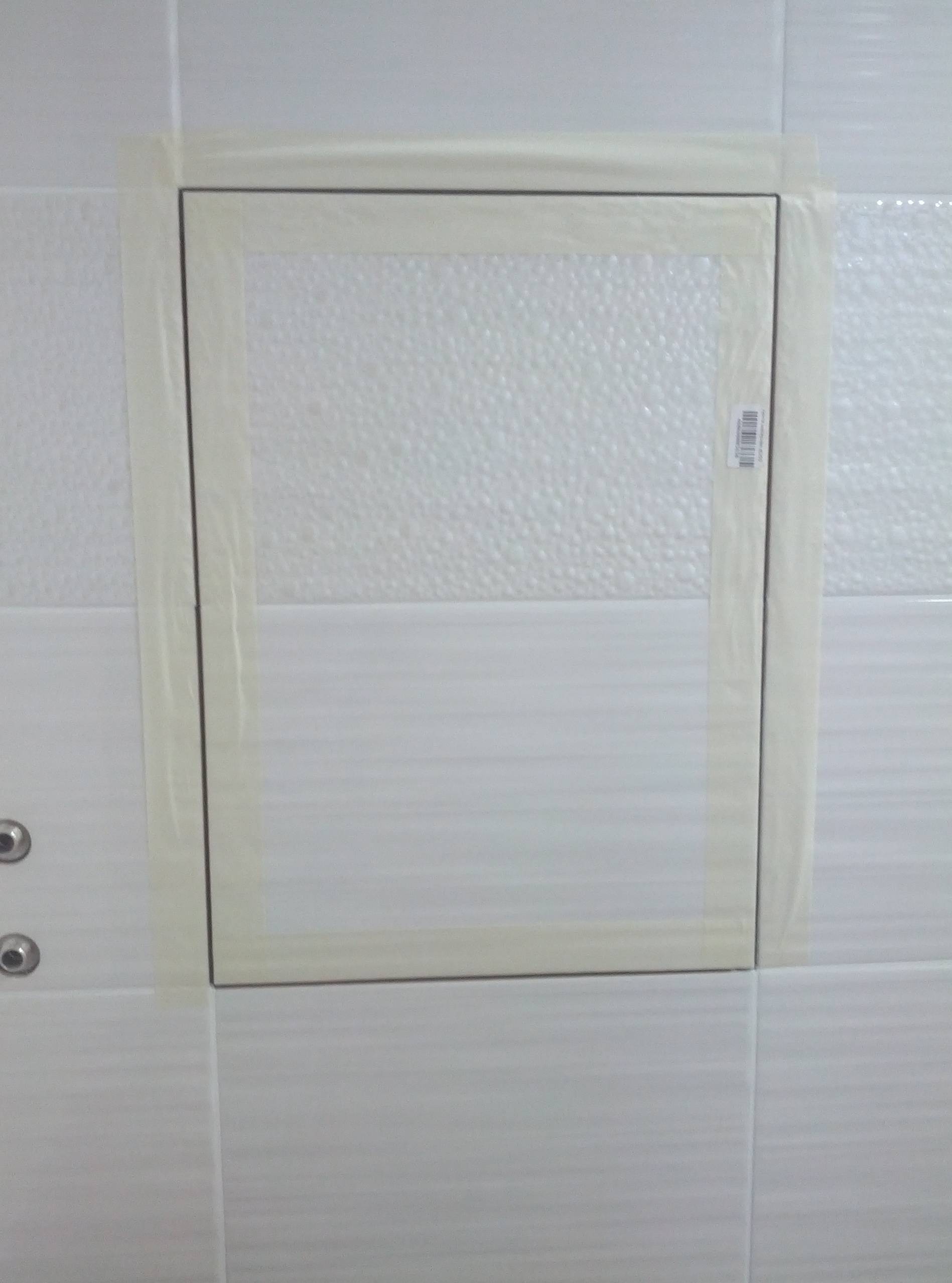 - установите плитку в проем, отметьте расположение и привинтите магниты к рамке.