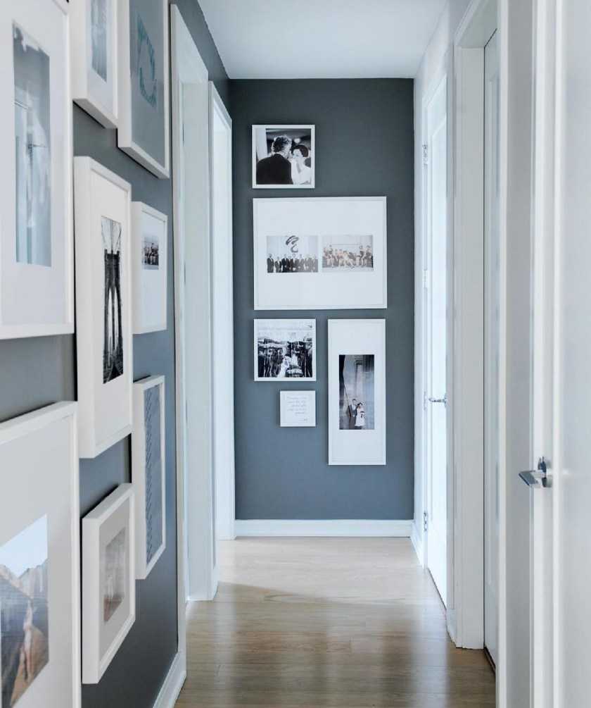 Превратите часть коридора в картинную галерею или фотовыставку. Отделите эту зону от прихожей цветом или фактурой.