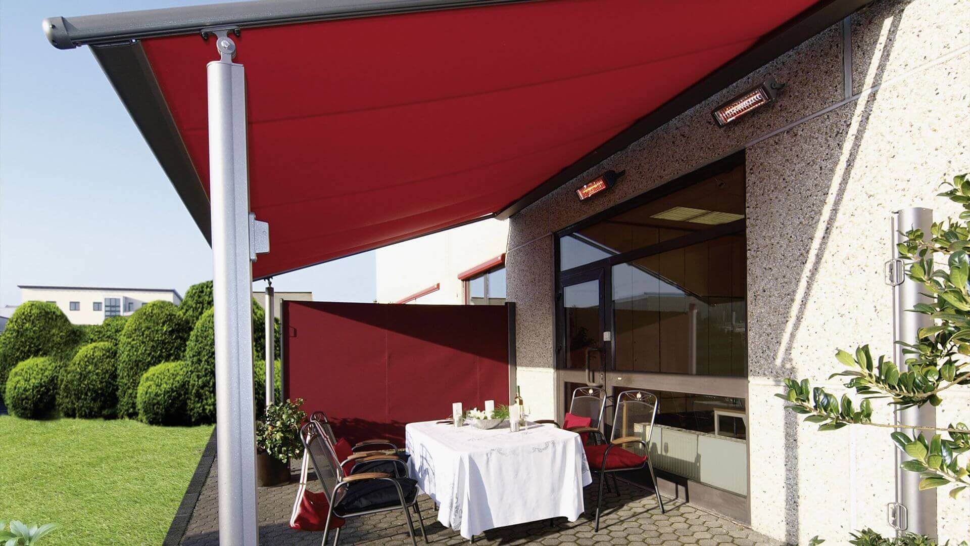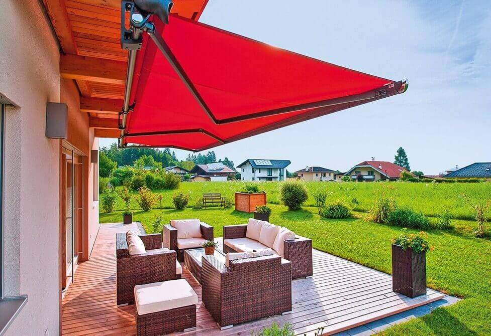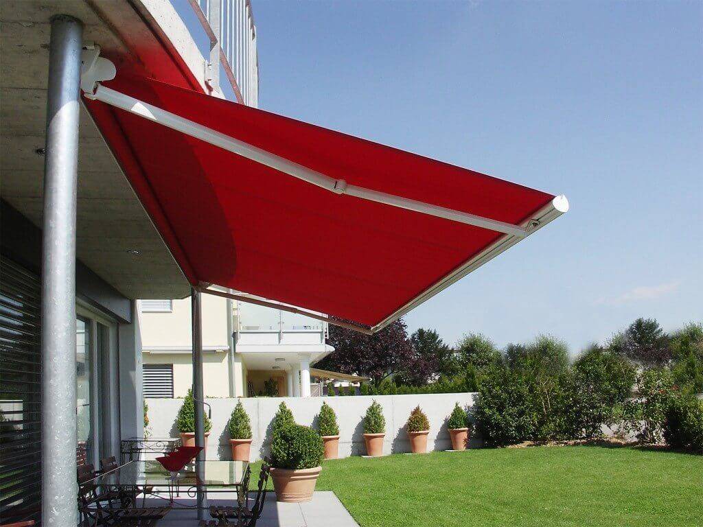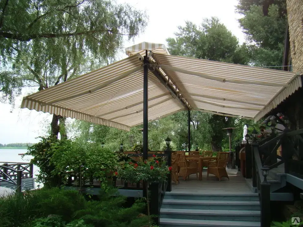 Часто именно двусторонние маркизы для террасы и веранды используются в качестве основы для горизонтальных и локтевых разновидностей.