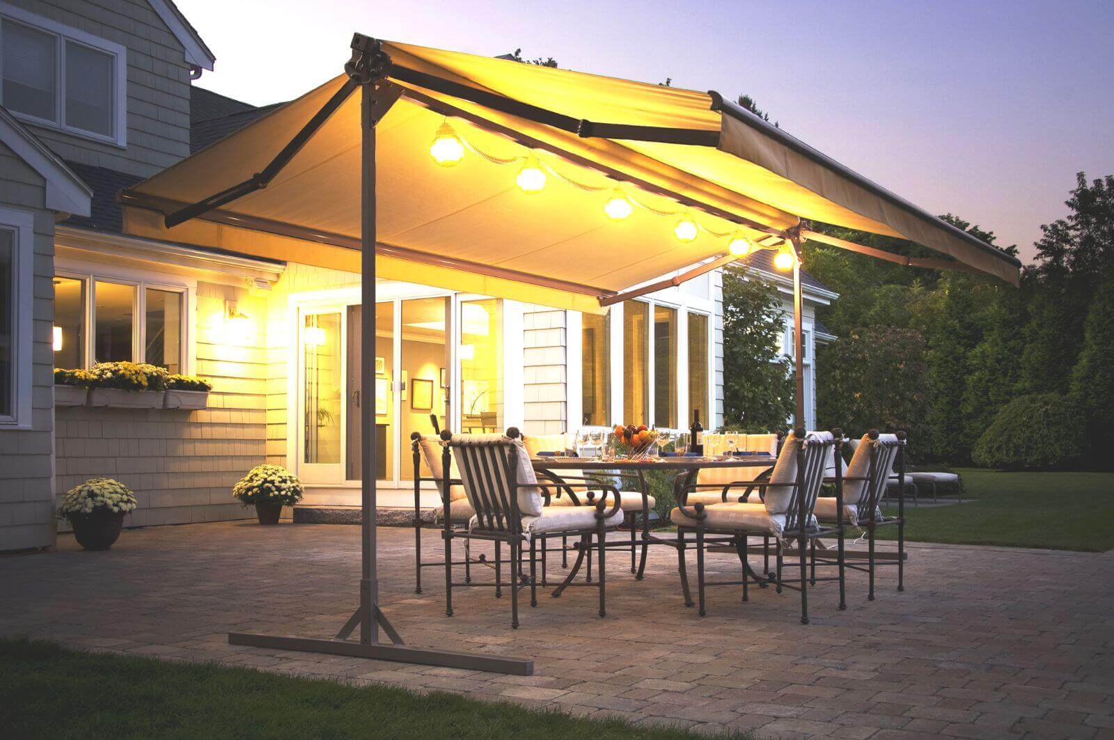 При помощи маркизы можно не только защитить свой дом и летнюю террасу от солнца, но и украсить свой дворик
