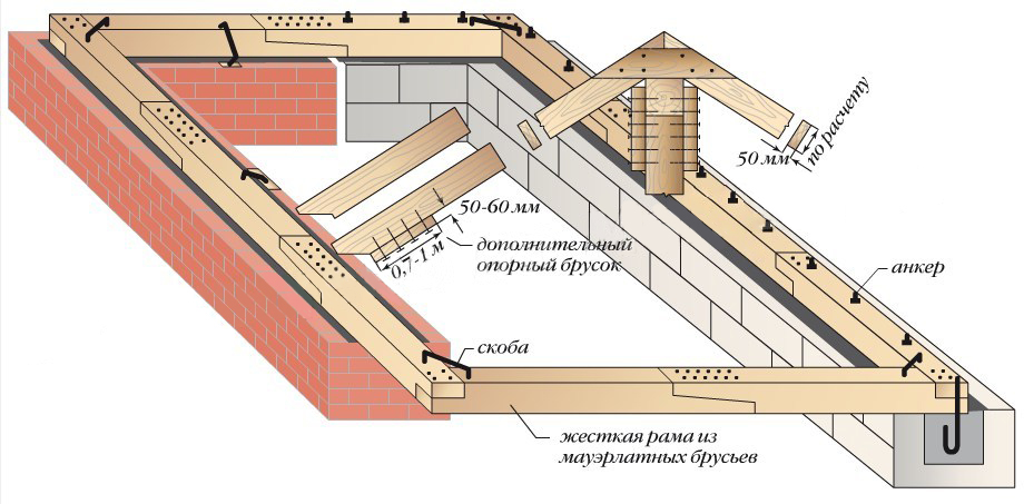 Разновидности крепления мауэрлата к газобетону