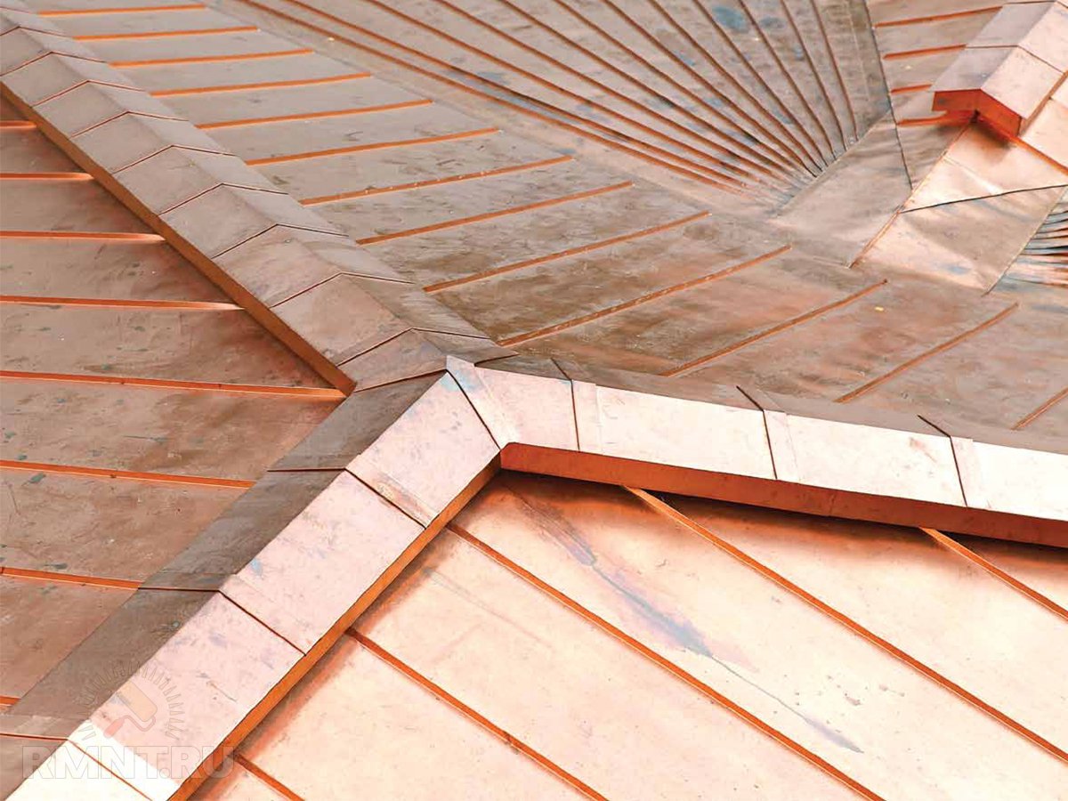 Все виды покрытий можно поделить на две основные группы – гонтовая и фальцевая кровли. Первый вариант представляет собой отдельные элементы небольшой формы, перекрывающие друг друга посредством стыков. Фальцевая кровля – специальные медные листы, соединенные между собой при помощи фальцевания. Благодаря этому достигается максимальная герметичность, так как поперечные соединения отсутствуют полностью.