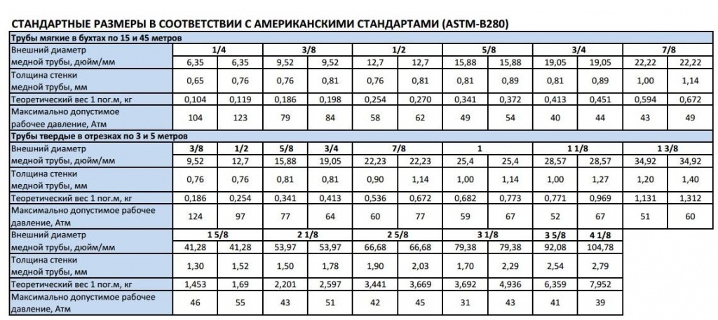 Медные трубы для кондиционера: размеры, таблица диаметров, необходимая длина