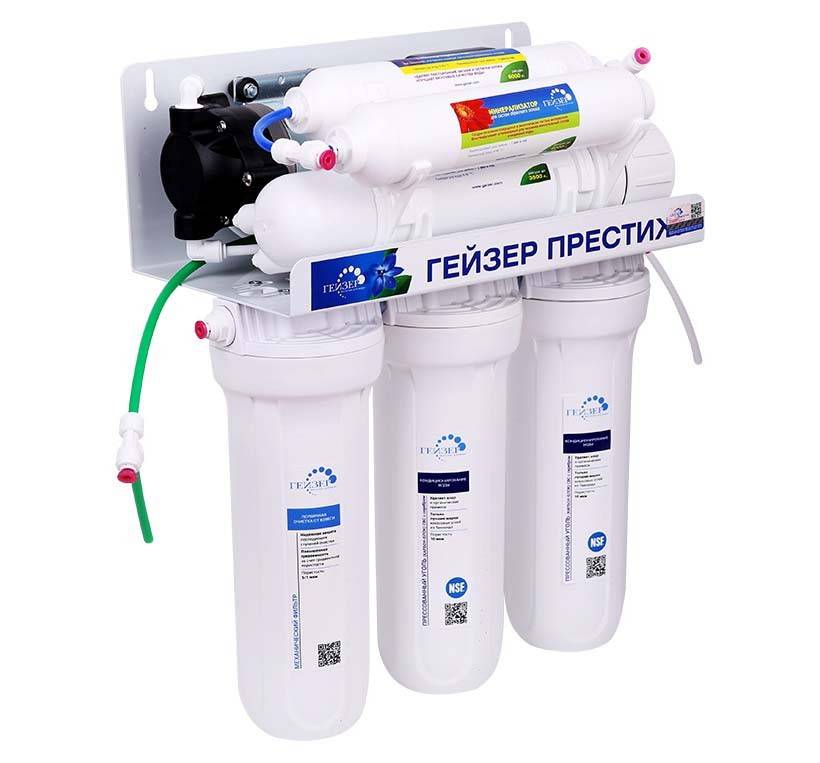 В продаже имеется большое количество бытовых фильтрующих систем мембранного типа от отечественного производителя, заслуживших положительные отзывы потребителей, к ним относят известные бренды: Аквафор, Гейзер, Исток, Новая вода, Atoll, Роса. Типовые модели с обратным осмосом состоят из следующих элементов:
