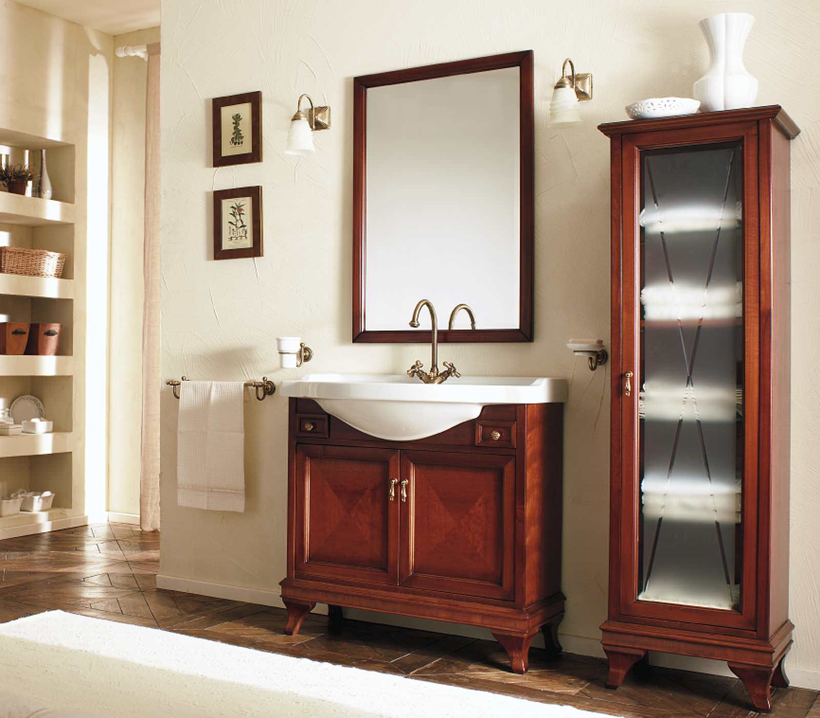 Древесина – этот тот материал, при упоминании о котором в голову не приходит даже сама мысль о влагоустойчивости. Несмотря на это, люди наловчились искусственными методами придавать ему характеристики, необходимые для использования готовых изделий в условиях повышенной влажности. И теперь в санузлах может встретиться не только деревянная полка в ванную, но и полноценные мебельные гарнитуры из древесины разной породы. Их присутствие облагораживает комнату, придает ей тепла и уюта, создает ощущение единства с природой, и добавляет обычным отделочным материалам новые и экзотические нотки.