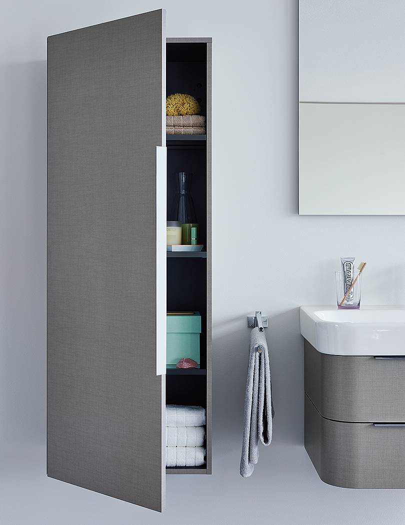 Если речь идет о шкафах-пеналах, то они чаще всего представляют собой узкую конструкцию, их ширина составляет 20 см и более. Многие любят размещать их в паре с обеих сторон умывальника.