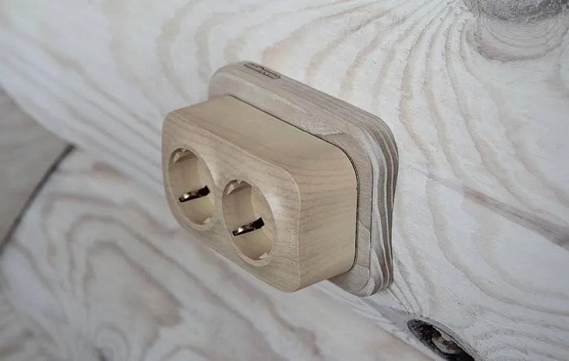 Розетка в деревянном доме может быть и деревянной, но основные требования к ее установке остаются прежними Источник story-cklad.ru