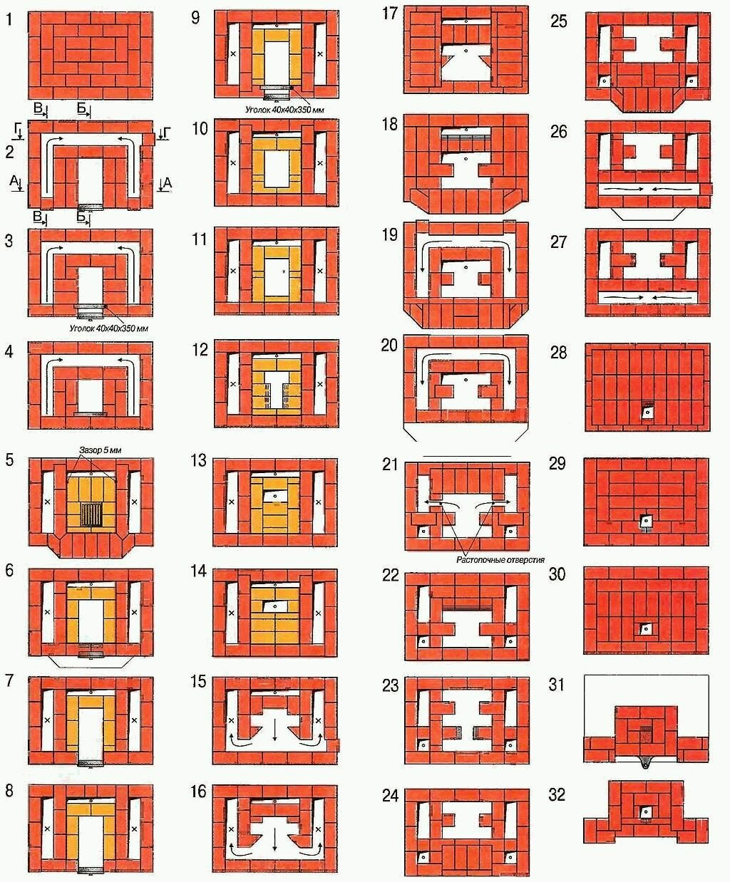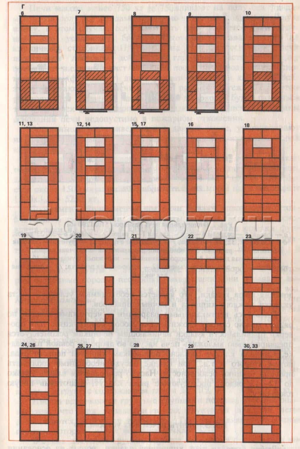 Перед началом работ стоит ознакомиться с порядовкой выбранного типа печи. Наглядные схемы подскажут, в каком порядке класть кирпичи.