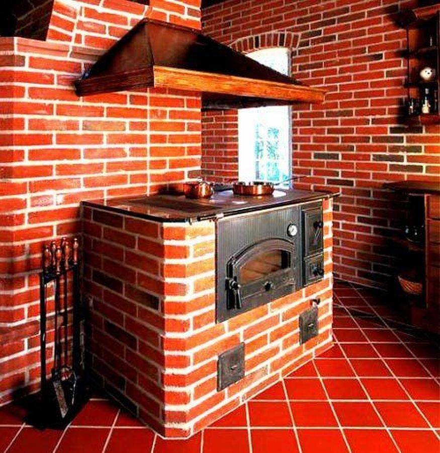 - Варочная печка. Такой вариант целесообразно выбрать для дачи, где хозяева бывают только в летний период. В этом случае обогрев дома не нужен, а если оснастить конструкцию дополнительно баком для воды, то она будет служить не только для приготовления еды, но и позволит создать комфортные условия для проживания. - Часто такой вариант устанавливается в загородных коттеджах, где предусмотрено газовое и электрическое отопление, а вот в целях экономии ресурсов владельцы иногда пользуются кирпичной печью.