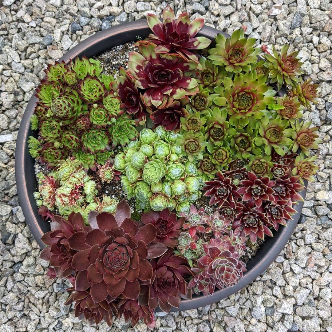 Суккуленты часто считаются воплощением простых в уходе растений, особенно если их высаживать на открытом воздухе. Суккуленты молодило различается по цвету, текстуре, форме и размеру (название охватывает 40 различных видов и множество подвидов), но вы можете ожидать, что любое растение с таким названием будет выносливым. Эти суккуленты могут справляться с засухой, ветром и морозом, если их корни не находятся в переувлажненной почве.