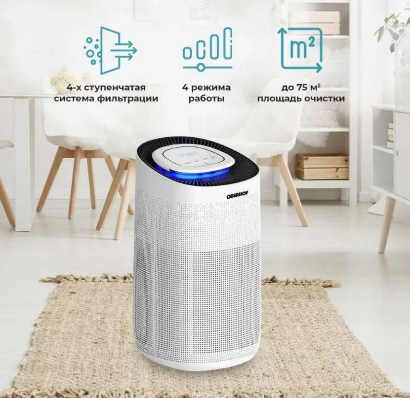 - Ozeanbrise D-08. Прибор с 4-х ступенчатой системе фильтрации и 4-мя режимами работы рассчитан на обслуживание площади в 75 квадратов. Среди возможностей – ионизация и УФ-лампа, индикатор замены фильтра и блокировка от детей. В спящем режиме шум снижается до приятных 25 дБ, но в обычном режиме шум ощутимый.