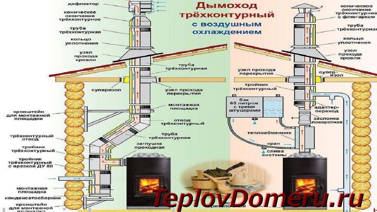 Монтаж дымохода из сэндвич труб через деревянную стену