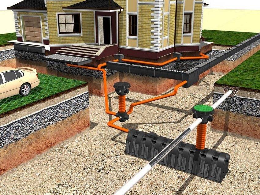 ВАЖНО! Чтобы обеспечивалось естественное движение осадков по системе водосбора до места фильтровки и выгрузки, составляющие канализационной системы необходимо уложить с наклоном в сторону данных систем.