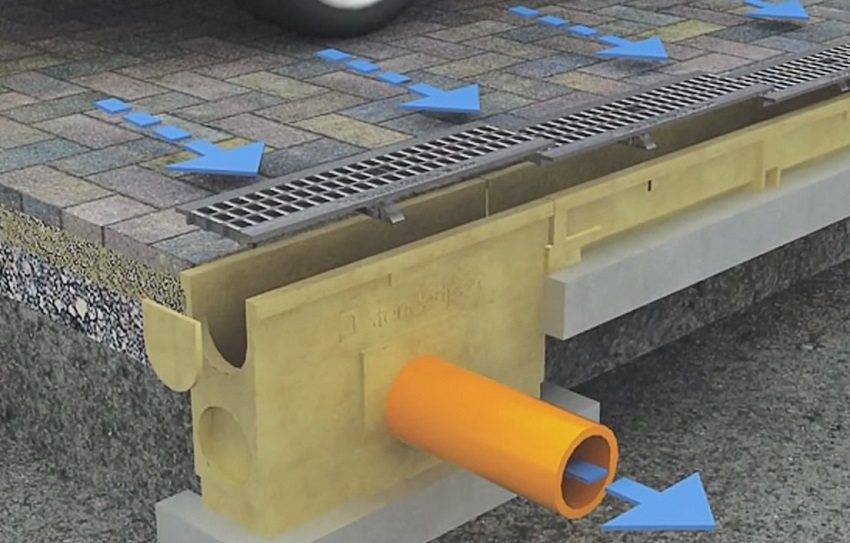Вся система каналов и устройств отправляется в колодцы коллекторов, распределяясь затем в месте разгрузки. Прокладка ливневки в грунте применяет систему труб. В траншеях и канавах на поверхности встраивают лотки и желоба, сделанные из пластика, асбеста или бетона.