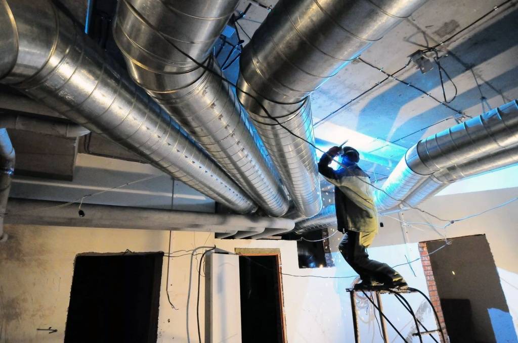 Монтаж воздуховодов начинают после окончания штукатурных работ, но до того, как в доме будет выполнена чистовая отделка.