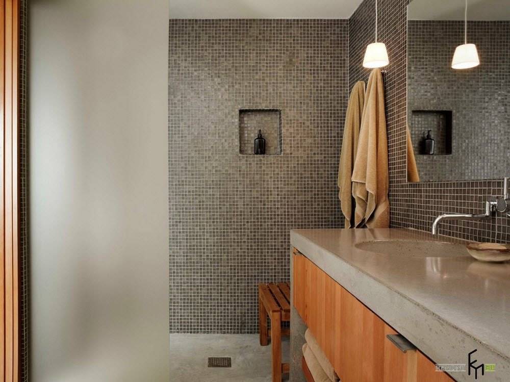 Другое дело, когда вопрос касается отделки определенных участков помещения. В этом случае мозаика играет роль декоративного элемента и позволяет подчеркнуть определенные части ванной или визуально преобразовать пространство внутри. К тому же отделка мозаикой отдельных участков, в комбинации с керамической плиткой, особо не повлияет на стоимость всех работ.