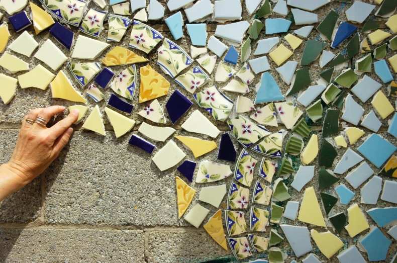Произвольная форма битой плитки позволяет своими руками выкладывать неповторимые рисунки. Чтобы сделать разлетание осколков менее заметным требуется смягчить удар. Для этого берется обычная тряпочка, обматывается вокруг посуды или прочего материала, а затем производится удар молотком или другим тяжелым предметом. Все черепки останутся в тряпке, их останется лишь подобрать и использовать по назначению.