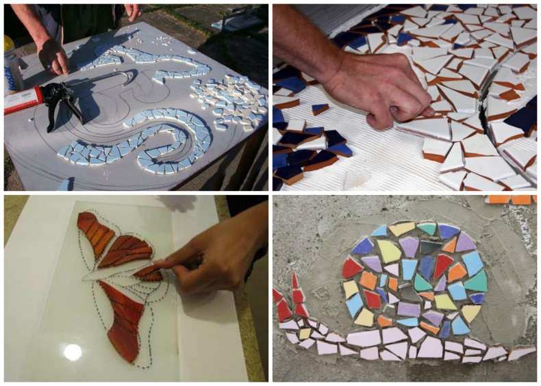 Используя самые разные материалы, для мозаики начиная от разбитой плитки до осколков посуды можно создать своими руками настоящий шедевр.