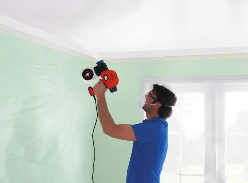- Краскопульт. Наличие глубокого рельефа или сложного рисунка создает определенные затруднения при окрашивании плитки. Чтобы добиться однородности поверхности и хорошо прокрасить все углубления, рекомендуется воспользоваться пульверизатором.