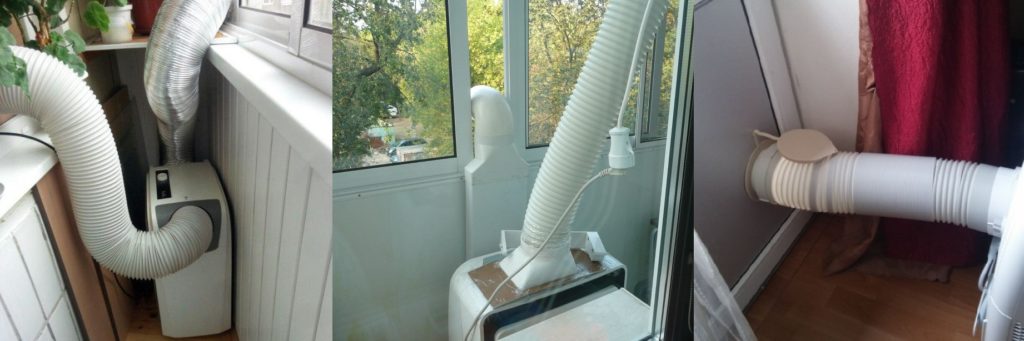 Такой вид агрегатов не пользуется особой популярностью, благодаря небольшому объему охлаждения и шуму во время работы. К плюсам можно отнести то, что его легко перемещать по квартире. Для работы достаточно подключить данное устройство к электросети, а сливной шланг вывести на улицу.
