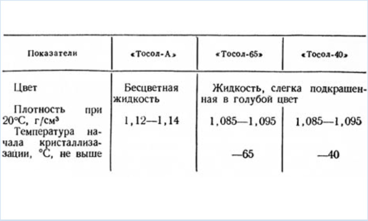 Хотя основным компонентом в составе Тосола является этиленгликоль и он визуально не отличается от антифризов на гликолевой основе, имеются следующие расхождения в составе и технологии их изготовления: