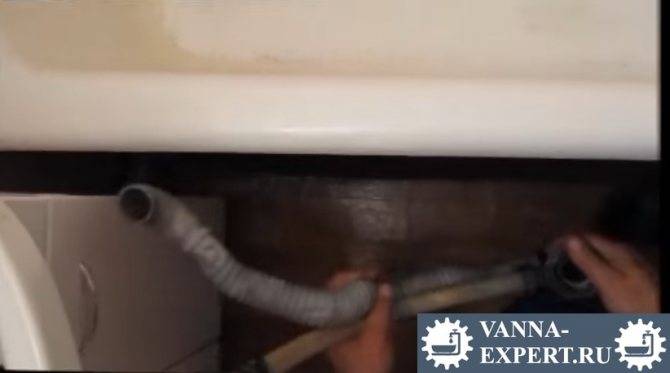 | Шаг 2 | Отключить ванну от коммуникаций, демонтировав верхний и нижний сливы. Крестовину тоже нужно удалить, причем не стоить использовать для этих целей молоток или другие подобные материалы, чтобы не повредить слив. Прежде чем приступать к монтажу, лучше проверить состояние труб – если они слишком изношены, лучше позаботиться о замене |