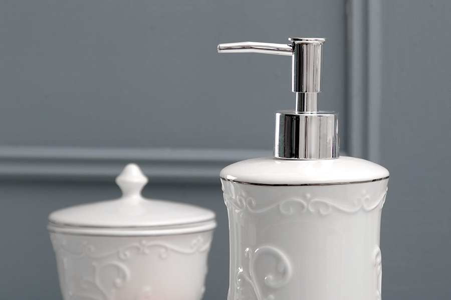 Можно пользоваться заводским дозатором для мыла, но не всегда он смотрится красиво и вписывается в интерьер. Если вы считаете, что красота в мелочах, купите себе красивый дозатор для жидкого мыла в магазине сантехники. Обычно он идет в комплекте со стаканом для зубных щеток, контейнером для ватных палочек, держателем для полотенец и другими «штучками» для ванной. Объем такой мыльницы в зависимости от модели от 200 мл и больше.
