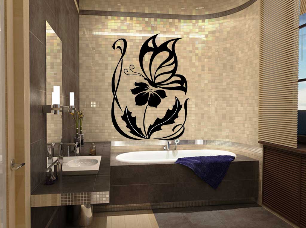 Если желаете создать особое настроение в зоне принятия водных процедур, сделать помещение более эффектным, можно смело использовать для этого виниловые стикеры. При этом участки для нанесения рисунка выбирают любые. Распространённые места для наклеек в ванной следующие: