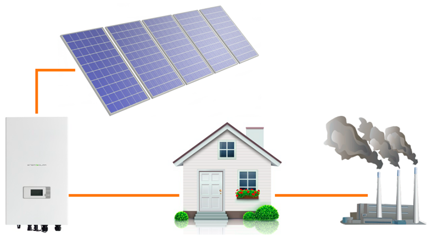 У этой станции отсутствуют дорогостоящие аккумуляторы. Применяется такая схема при наличии стационарной электрической сети. Полученная солнечная энергия идёт на нужды потребителей. При избытке, часть электричества отдается в сеть, при недостатке – добирается из неё дополнительно.