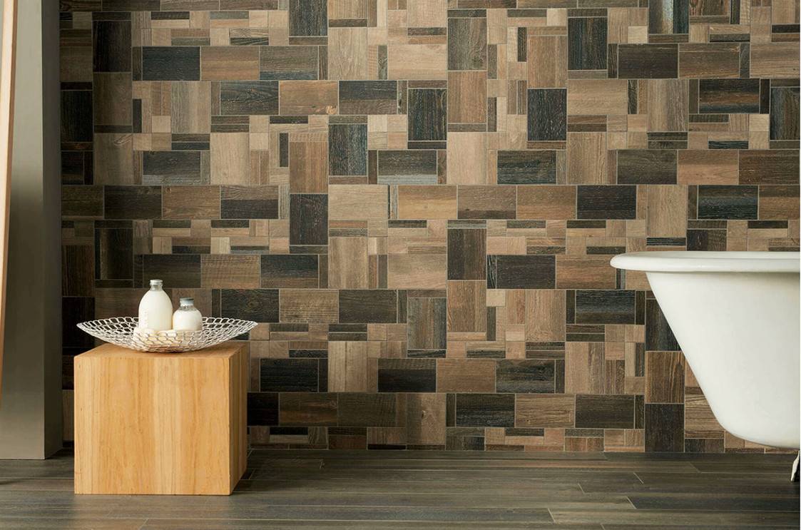 На фото: декор в стиле «деревянный микс» в коллекции Komi фабрики Pastorelli.