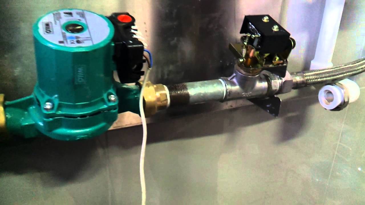 Автор видео встроил насос напрямую в подающую линию, автоматическая блокировка сухого хода не предусмотрена: