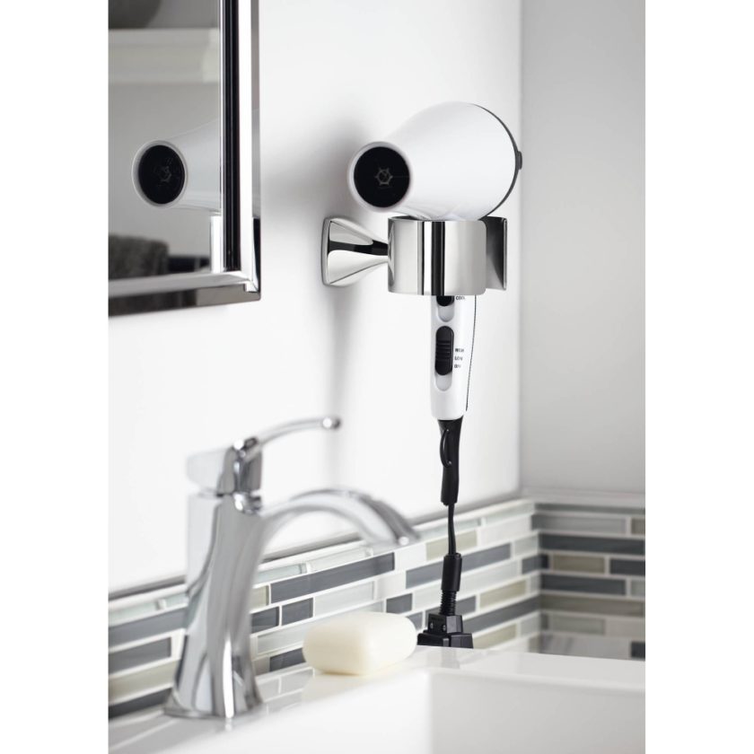 Ещё одно из преимуществ держателя — это отсутствие необходимости заменять подставку вместе с заменой фена. Средний размер держателя подойдёт для абсолютно любого прибора, который вы пожелаете разместить в ванной.