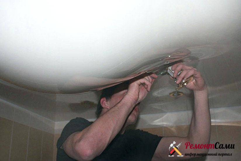 - неправильный расчет мощности светильников или отсутствие специальной прокладки, в результате чего со временем полотно начинает плавиться;