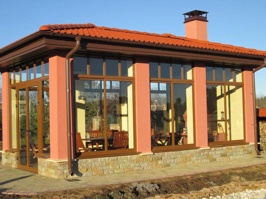 В отличие от предыдущего, этот вид относится к горячим, так как на тепло можно купить утеплитель. Кроме того, закрытые таким образом от ветра беседки имеют ряд преимуществ: