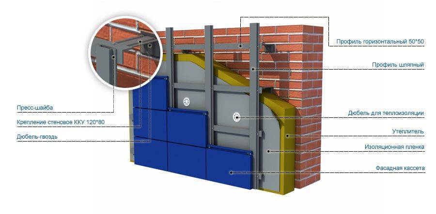 Рис 3. Утепление вентилируемого фасада