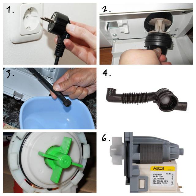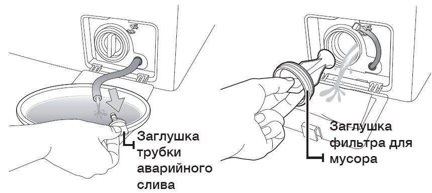 Ни один способ, приведенный выше, не помог? Решаем проблему просто – открываем дверцу и удаляем воду вручную. Действовать придется следующим образом: