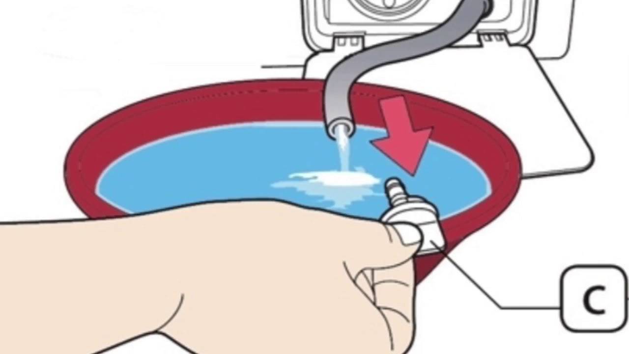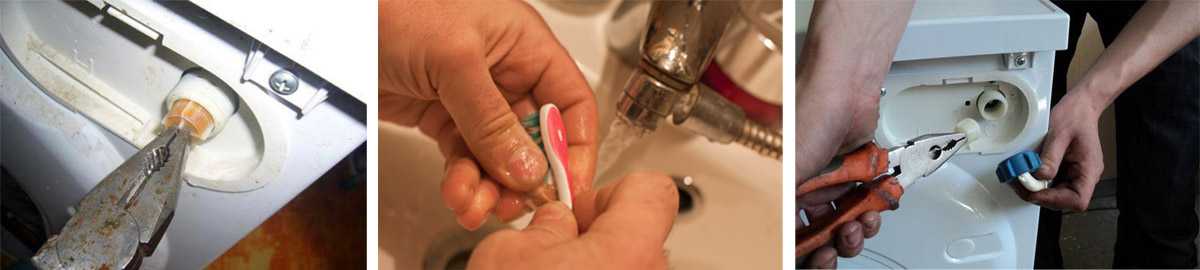 Способ очистки заливного (заборного) шланга, фильтра, клапана подачи воды и прессостата: