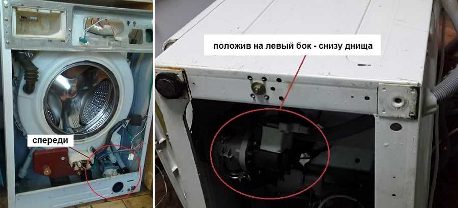 Перед разборкой устройства обязательно слейте с него воду, иначе промочите все детали в машинке. Чтобы добраться до сливного насоса машинки, вам необходимо разобрать заднюю и верхнюю стенку корпуса бытового прибора. После чего перевернуть машину набок, предварительно зафиксировав барабан болтами. Затем снимаем насос, отсоединив клеммы. После проделанной манипуляции берём новую конструкцию, подходящую к этой модели машинки, и надёжно фиксируем на прежнее место.
