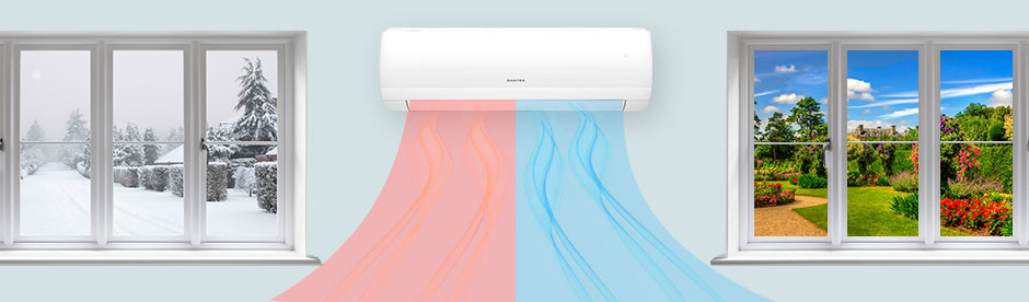 На фото: Работа кондиционера в режиме обогрева и в режиме охлаждения