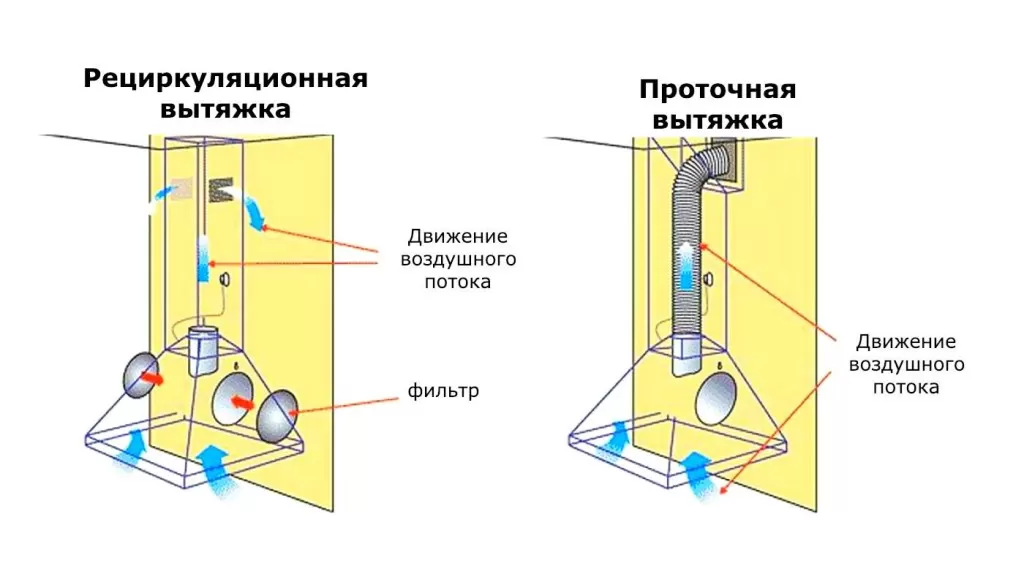 Все вытяжки работают по разному принципу. Некоторые из них полностью выводят воздух наружу, другие фильтруют его и возвращают обратно в комнату. Такие устройства соответственно называют отводными и циркуляционными. Желательно знать их преимущества и недостатки, чтобы правильно определится с выбором прибора.