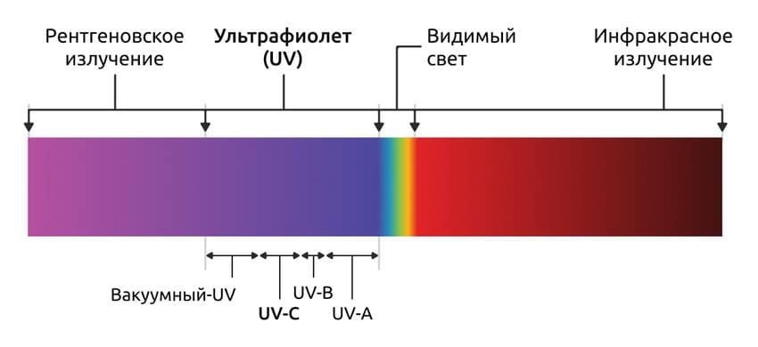 Это прибор или элемент, продуцирующий волны в диапазоне 205-215 нм. Получил общее название «бактерицидная лампа», самая распространенная разновидность которой – разрядная ртутная низкого давления. Она под действием электричества испаряет смесь из металла и аргона, и свыше 60% данного вещества преобразуется в УФ со спектром в 253,7 нм, то есть с максимальной эффективностью действия против бактерий.