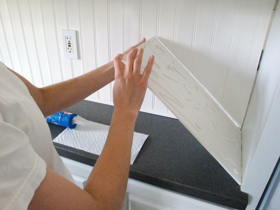 Такой вариант подходит для владельцев кухни с небольшой площадью. Достаточно одного панельного листа, чтобы закрыть всю рабочую зону. Пошаговая инструкция включает следующие действия: