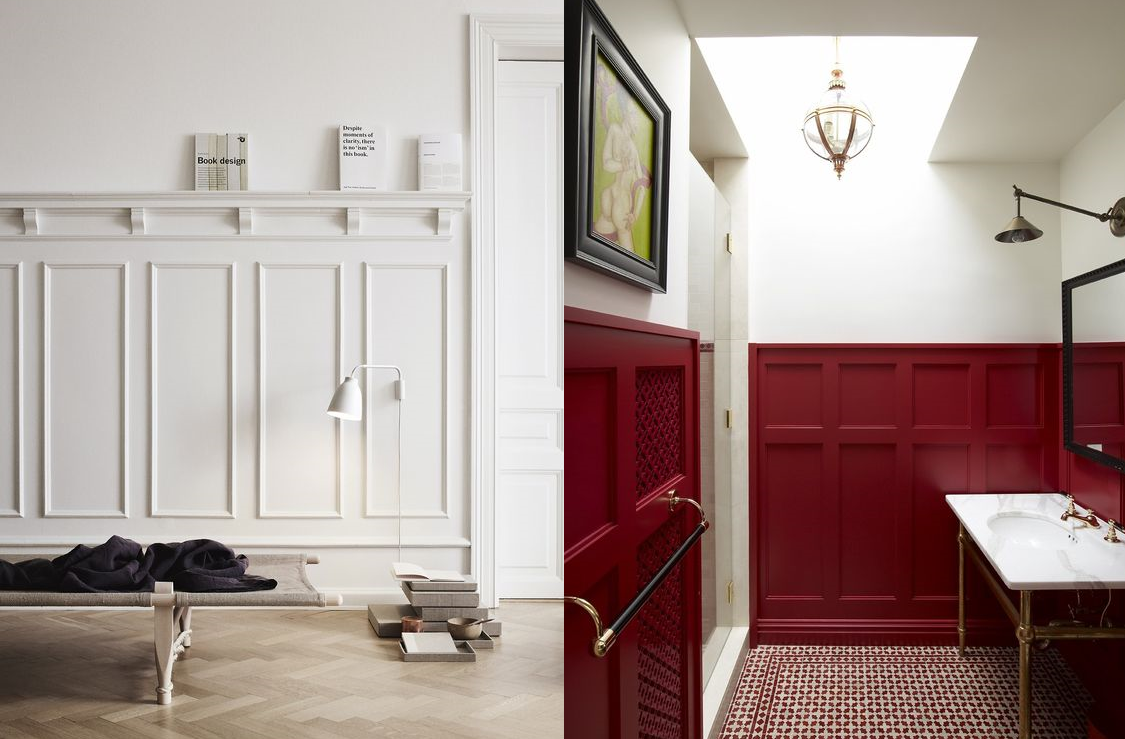Традиционно такие панели изготавливали из массива дуба, сегодня вайнскот делают даже из МДФ или имитируют с помощью досок и молдингов. Так реечная версия вайскота — это по сути вагонка с горизонтальным рейлингом.